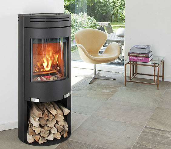 Et romslig vedrom i bunnen gir praktisk oppbevaringsplass, og Aduro-tronic-systemet sikrer miljøvennlig og effektiv fyring. Perfekt for deg som ønsker komfort, stil og enkel betjening i én og samme ovn.