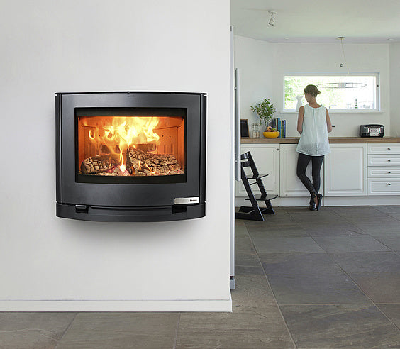 Denne vegghengte ovnen har en markant ellipseform og et romslig brennkammer som tar ved på opptil 50 cm. Det brede flammebildet gir en rolig og lun stemning i rommet – perfekt som visuelt midtpunkt på veggen.