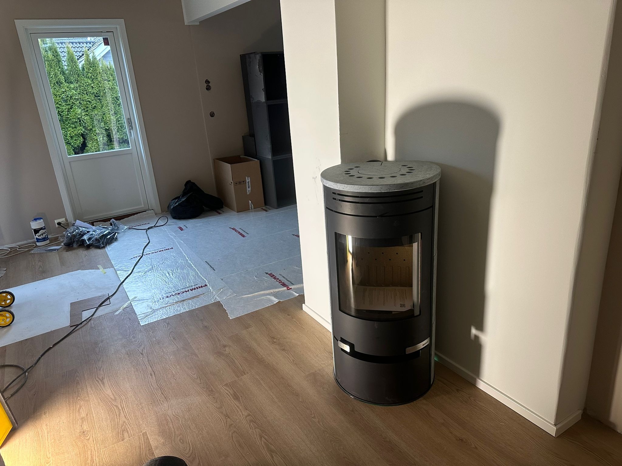 Området må være ryddet og tilgjengelig. Eventuelle avklaringer rundt pipe og plassering bør være gjort.