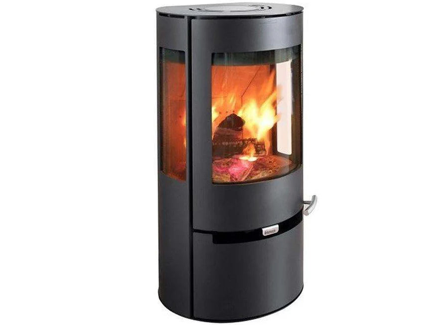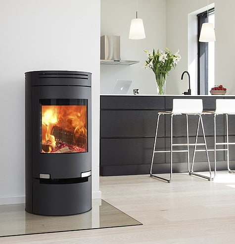 Aduro 15-serien kombinerer elegant ellipseform med bredt brennkammer og plass til vedkubber...