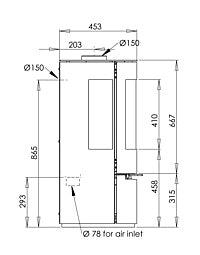 Røykrør diameter topp/bak: Ø150 mm