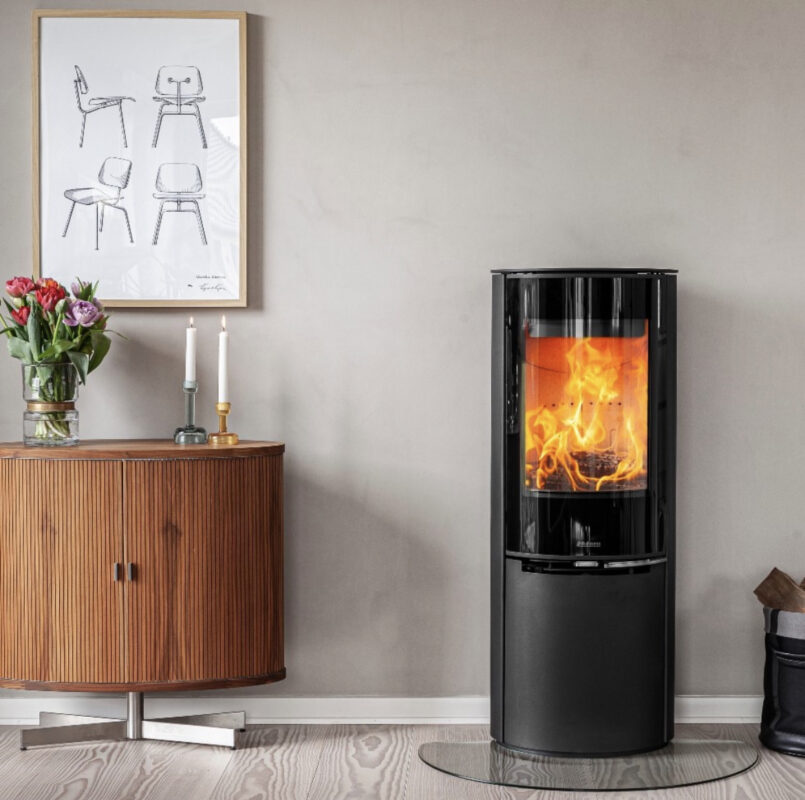 Aduro 15-serien kombinerer elegant ellipseform med bredt brennkammer og plass til vedkubber...