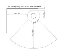 Avstand til brannmur: 5 cm bak / 11 cm til siden