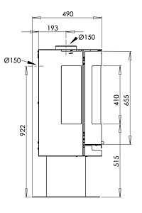 Avstand til brannmur: 5 cm bak / 30cm til siden