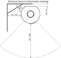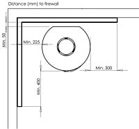 Avstand til brannmur: cm bak/ 22,5 cm til siden